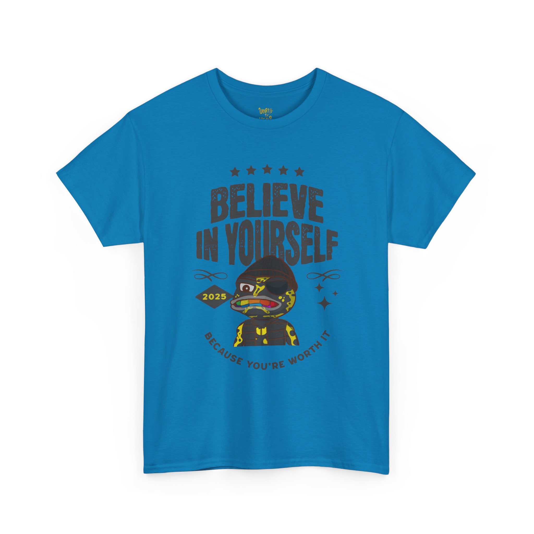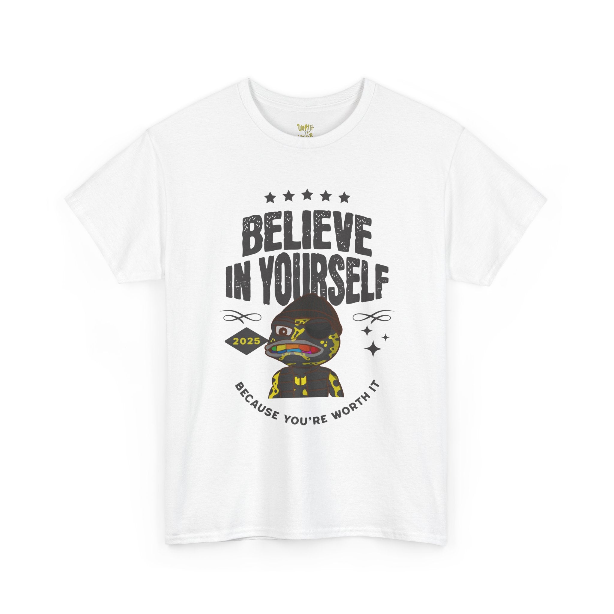 Soft, breathable cotton and a confident message — this classic crew tee holds a small, detailed front illustration and bold back lettering that keeps encouragement close at hand. Lightweight but sturdy, the shirt drapes casually across the shoulders and keeps its shape with a ribbed collar and taped seams. Wear it on slow mornings, at the studio, or layered under a jacket when you need a quiet reminder to push forward. The design reads like a friendly nudge: calm, cheeky, and unapologetically supportive.