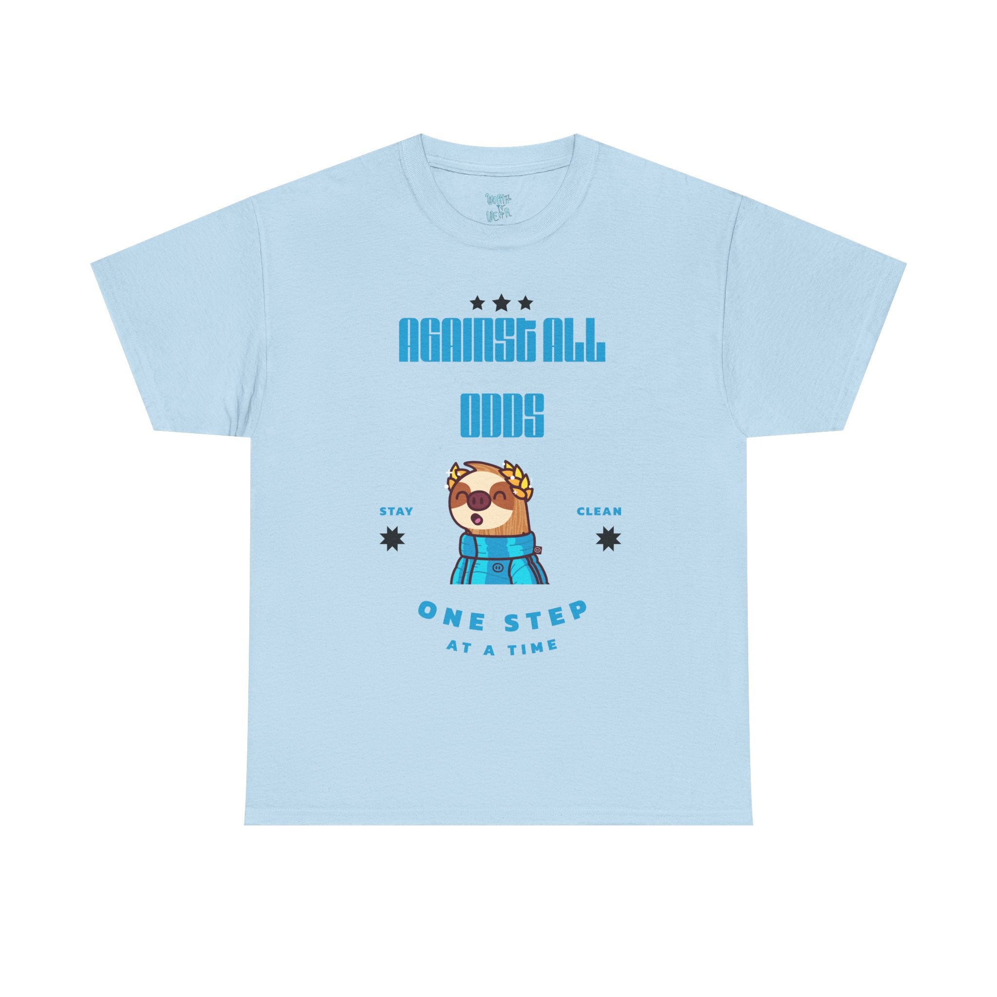 Soft, breathable tee with a calm, encouraging vibe. A friendly illustrated otter in a cozy scarf smiles from the chest with the words “One Step at a Time,” while the back carries a hand-lettered “Worth It Wear” in playful blue script. The lightweight cotton feels familiar and easy to move in — a quietly supportive piece you’ll reach for on slower mornings, long walks, or when you need a gentle nudge to keep going. It layers under jackets, pairs with relaxed jeans, and becomes part of a steady, low-key routine that values comfort and small victories.
